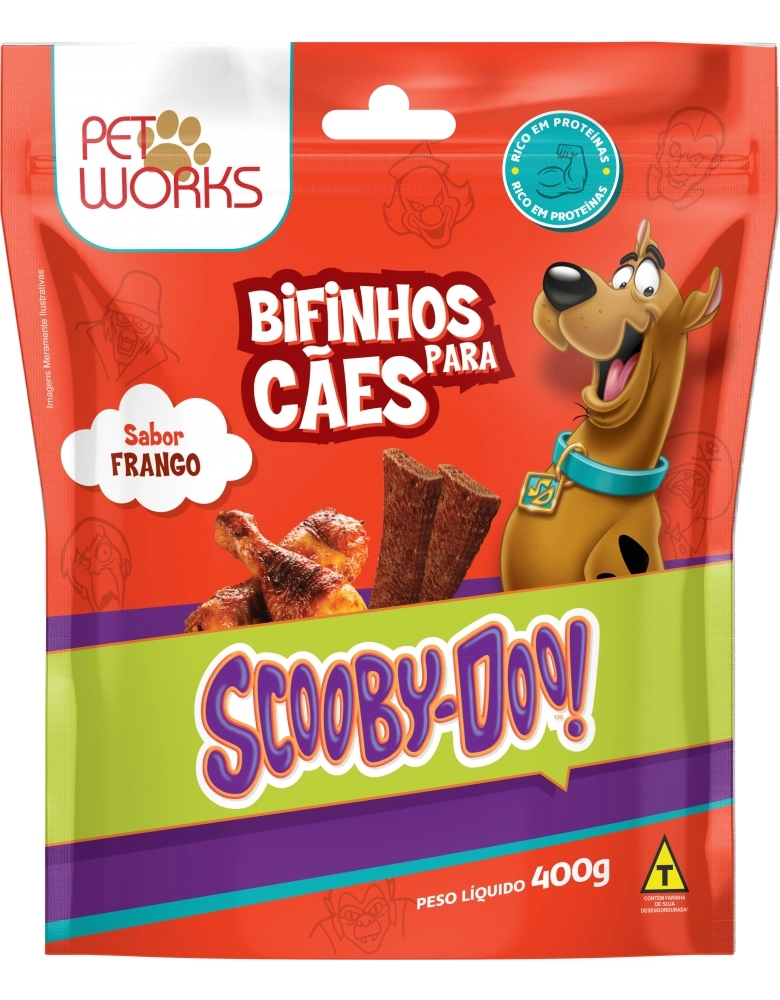 PET WORKS>CÃES>PETISCOS>Bifinho Pet Works Scooby Doo Frango 10X400G