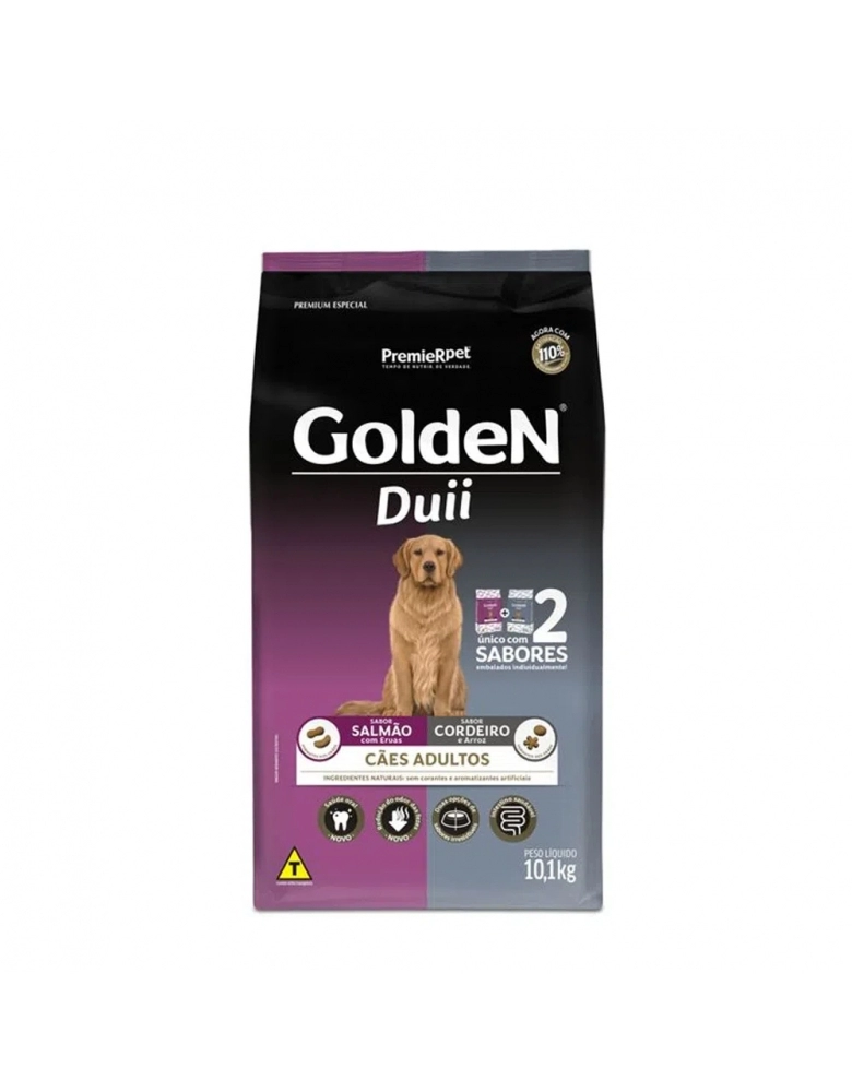 GoldeN Duii é um alimento com 2 sabores exclusivos, desenvolvidos especialmente para agradar ainda mais o paladar do seu cão. Por entender que o momento das refeições propicia um estreitamento dos laços entre o proprietário e o seu cão.