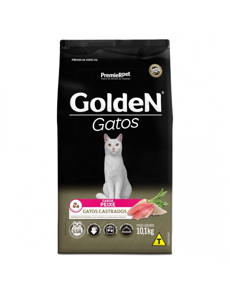 Ração Golden Gatos Adulto Castrado Peixe 10,1KG