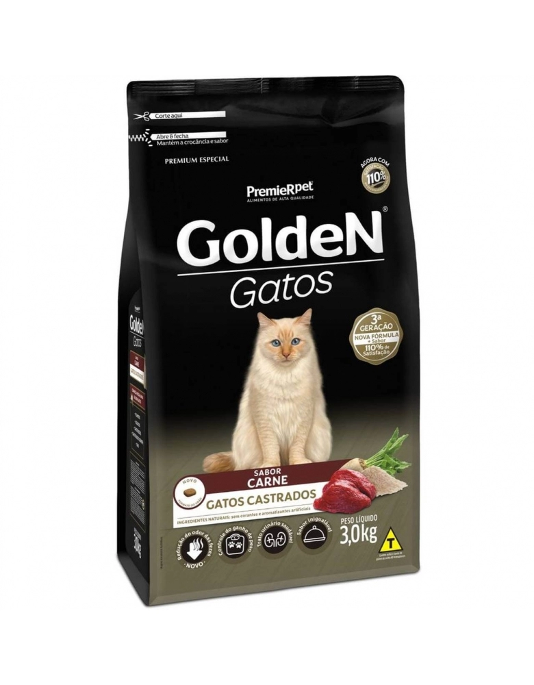 Ração Golden Gatos Adultos Castrados Carne 3kg