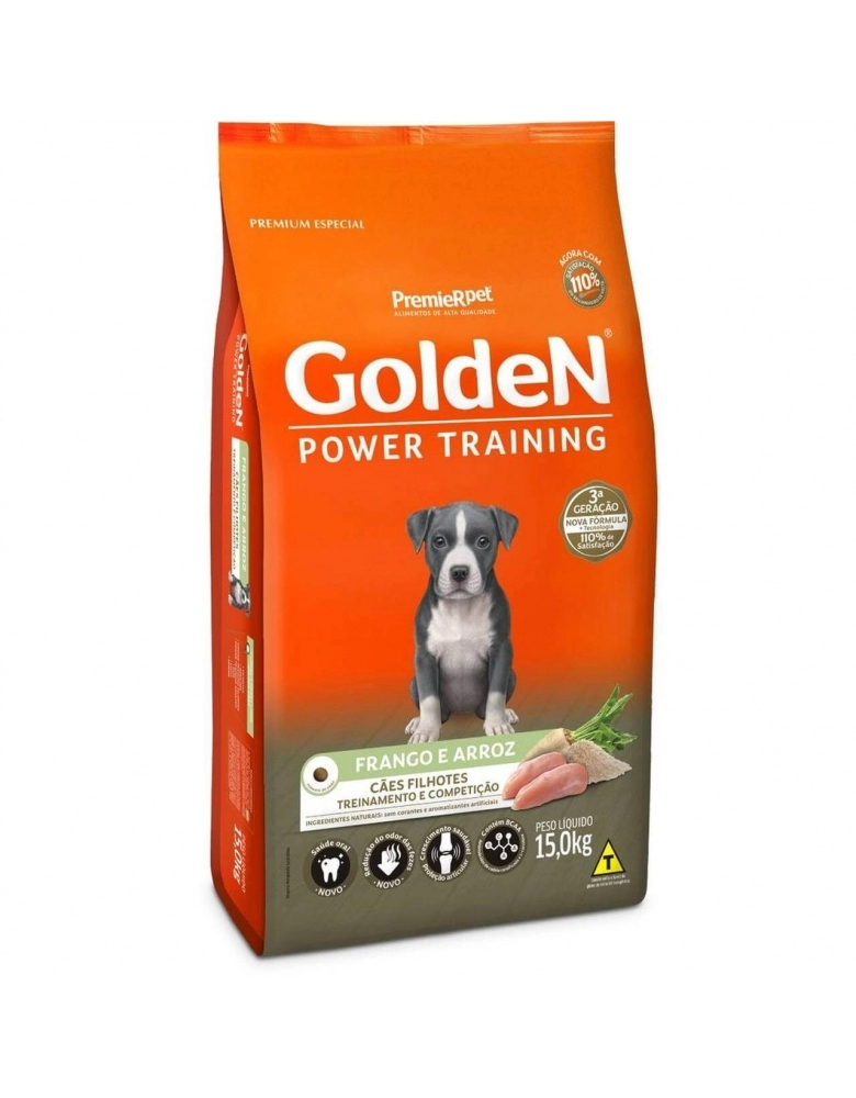 Ração Golden Power Training Cães Filhotes Frango & Arroz 15kg