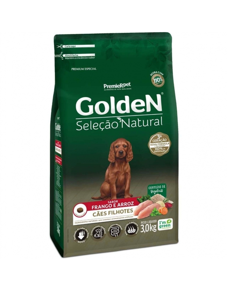 Ração Golden Seleção Natural Cães Filhotes Frango & Arroz 3kg