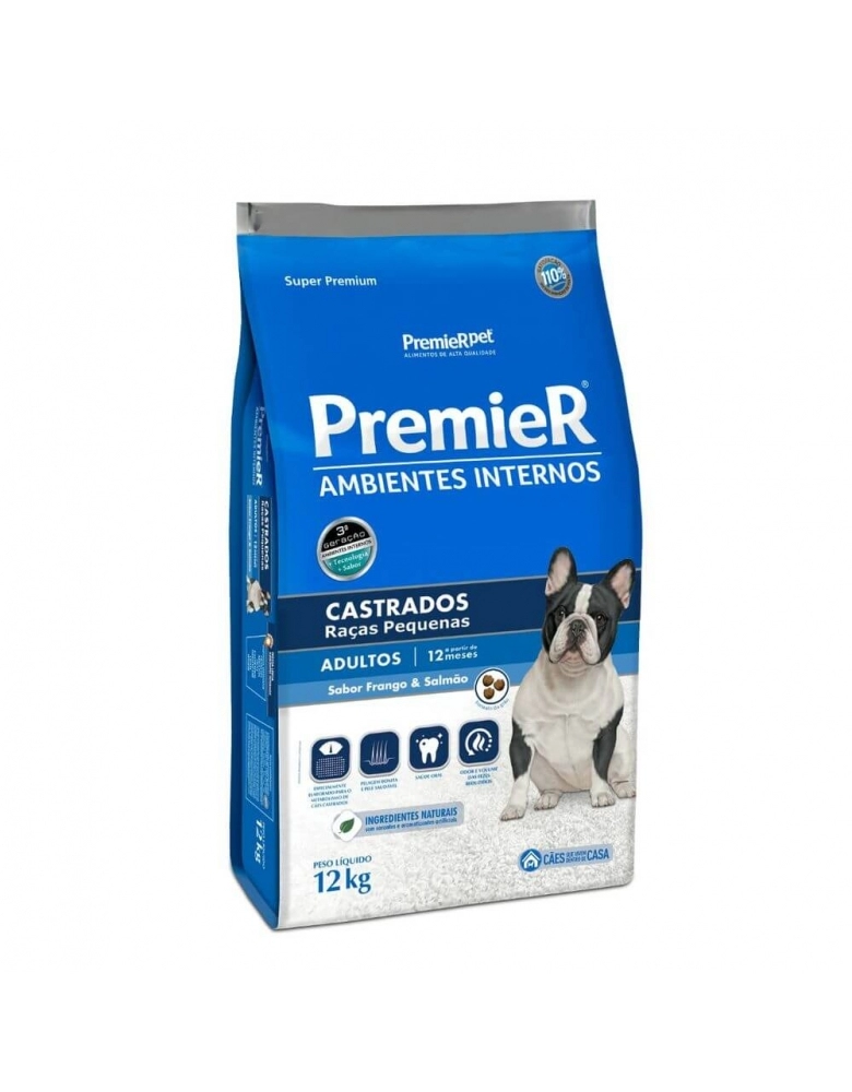 Ração Premier Ambientes Internos Cães Adultos Castrados Frango 12kg