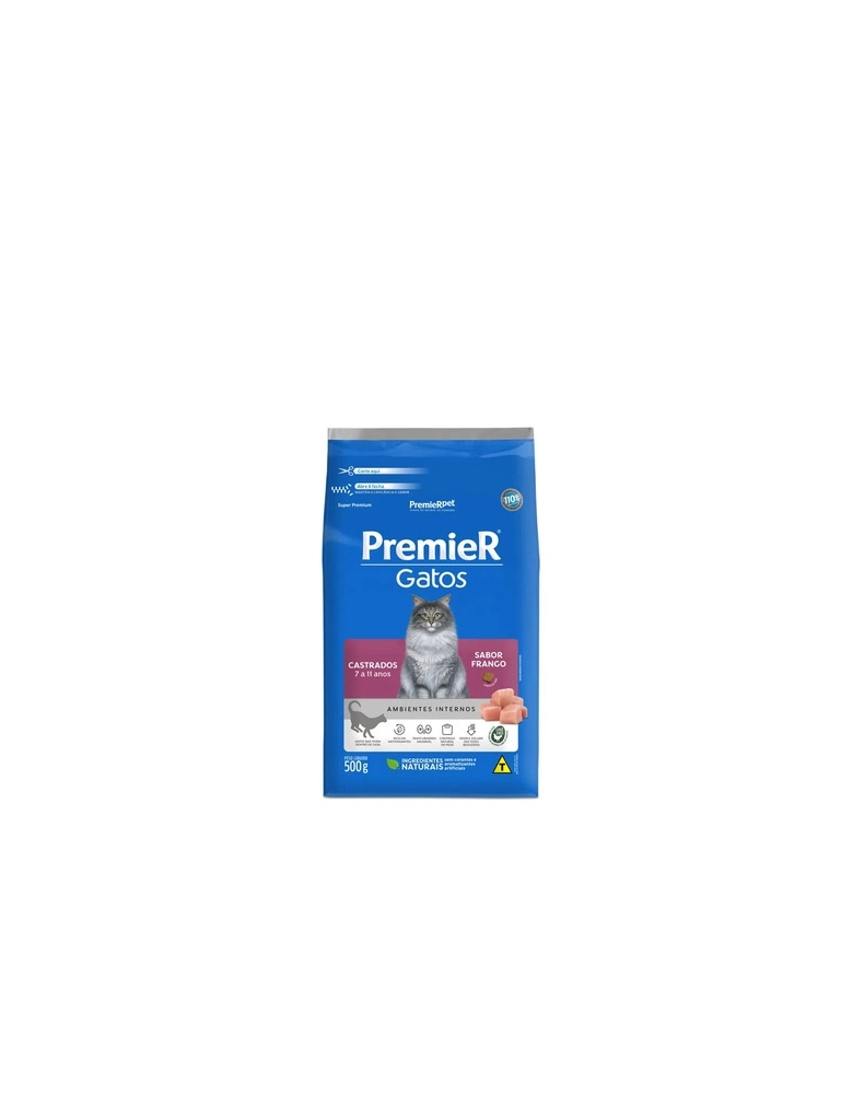 Ração Premier Ambientes Internos Gatos Adultos Castrados 7-11 Anos Frango 0,5kg