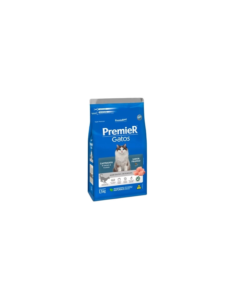 Ração Premier Ambientes Internos Gatos Adultos Castrados Até 6 Anos Frango 1,5kg