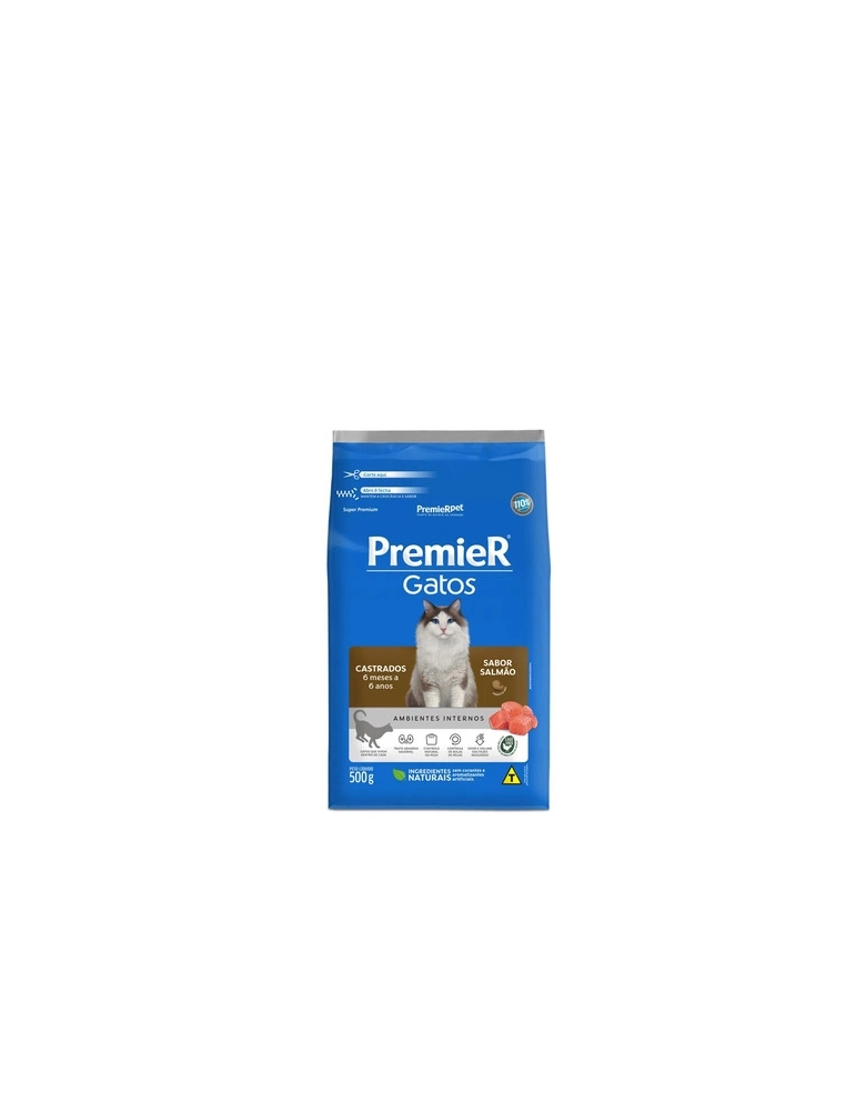 Ração Premier Ambientes Internos Gatos Adultos Castrados Até 6 Anos Salmão 0,5kg