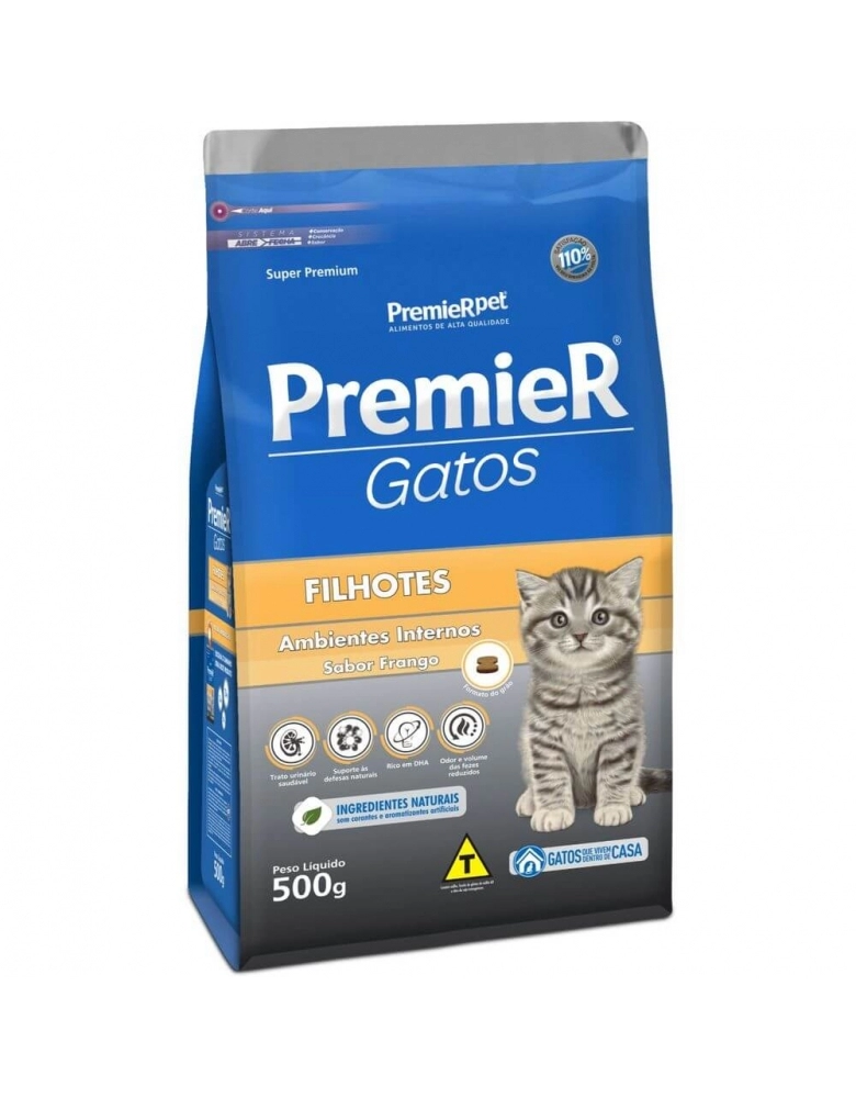 Ração Premier Ambientes Internos Gatos Filhotes Frango 0,5kg