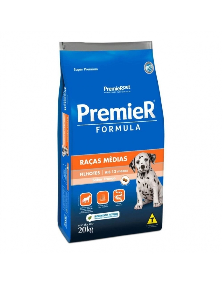 Ração Premier Fórmula Cães Filhotes Porte Médio Frango 20kg