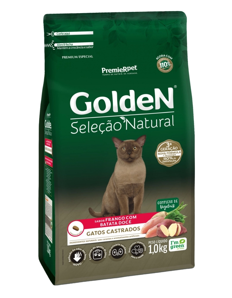 Ração Premier Seleção Natural Gatos Adulto Castrado Batada Doce 1 KG
