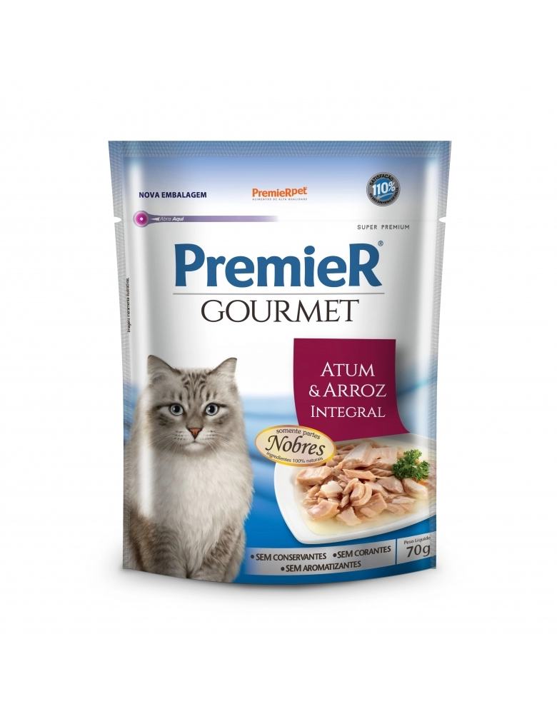 PremieR Gourmet Gatos Adultos Castrados – Atum e Arroz Integral é um alimento Super Premium que faz parte da linha PremieR Gourmet, uma linha de alimentos úmidos especialmente desenvolvida para retribuir todo amor e carinho que os gatos nos proporcionam. PremieR Gourmet Gatos Adultos Castrados Atum e Arroz Integral é nobre, nutritivo e natural, pois não contém corantes e aromatizantes artificiais, conservantes e nem ingredientes transgênicos.